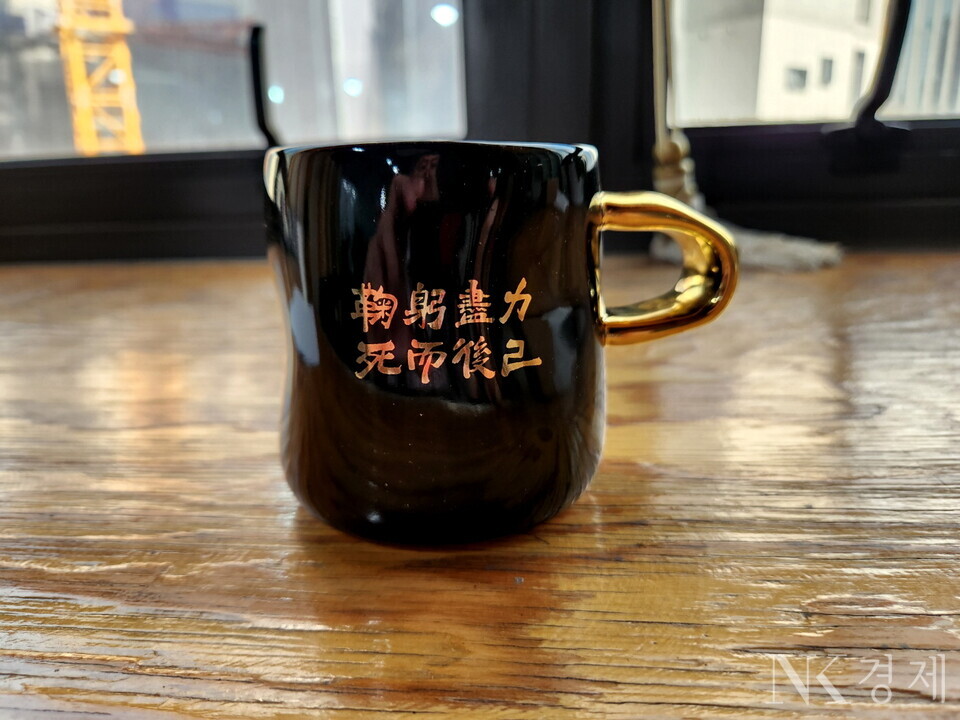 잔에는 금색으로 '국궁진력(鞠躬盡力) 사이후이(死而後已)' 문구를 새겼습니다.