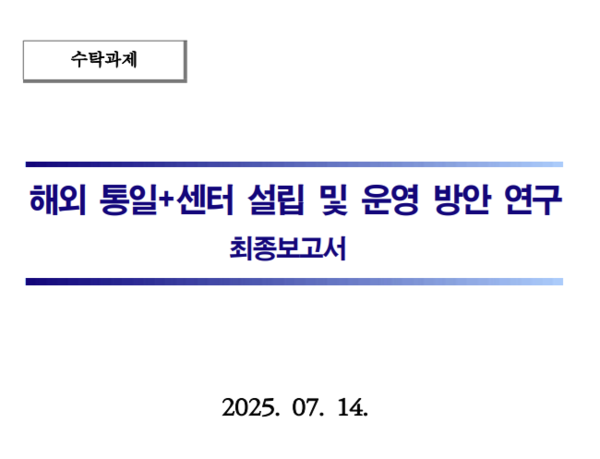 정부 관계자들에 따르면 통일부는 통일연구원 수탁과제로 올해 2월부터 7월까지 ‘해외 통일+센터 설립 및 운영 방안 연구’를 진행했다.