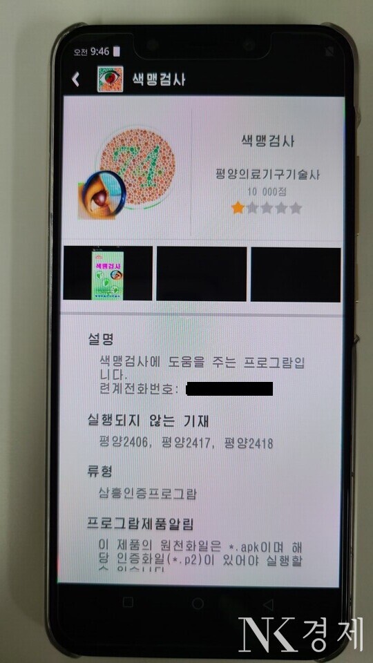 북한 앱 '색맹검사'는 평양의료기구기술사가 개발했다고 합니다.