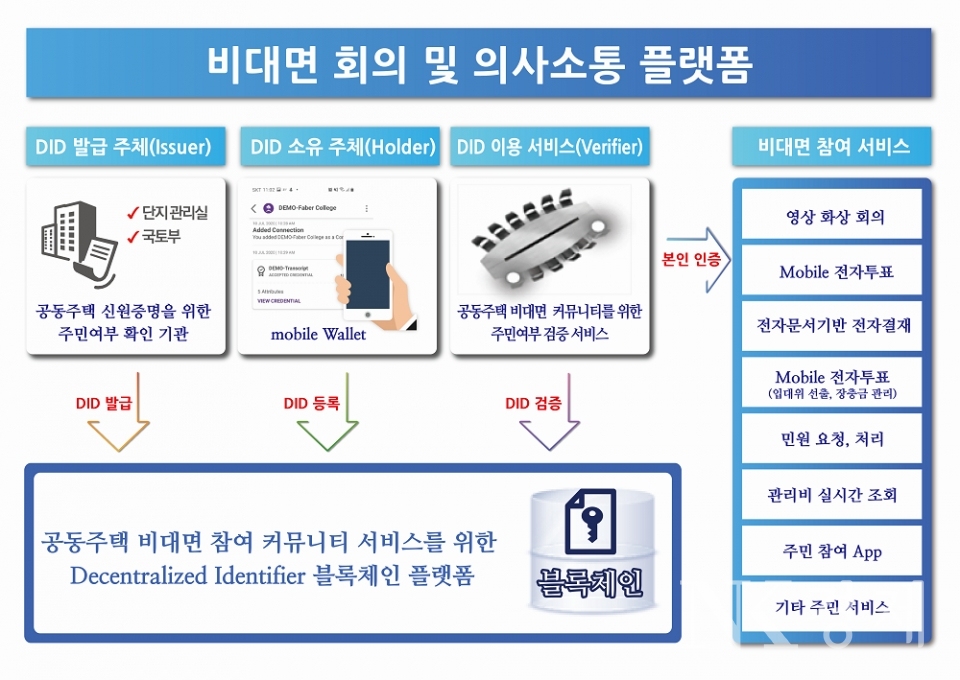 이번에 선정된 과제는 분산신원확인기술(DID)와 제로 지식증명(Zero-Knowledge Proof) 기술을 이용해 공동주택 거주자의 신원을 인증하는 것을 목적으로 한다. 총 사업비 18억7500만원(정부출연금 15억원) 규모다.