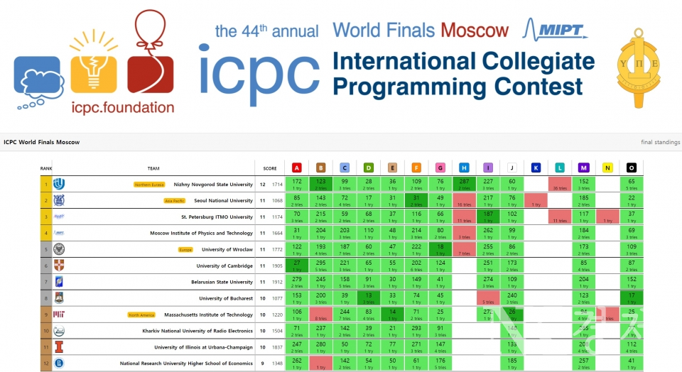한편 이번 대회에서는 러시아 니츠니노브고로트국립대학교(Nizhny Novgorod State University) 학생들이 1등을, 서울대학교 학생들이 2등을 차지했다.