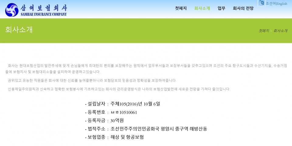 북한은 또 삼해보험회사 홈페이지도 공개했다. 삼해보험회사는 북한의 해상무역과 수산업을 포함한 해상업의 성과를 보호촉진시키기 위해 2016년 10월 6일에 설립됐으며 현재 국내에서 해상선체보험, 해상화물보험, 해상배상책임보험을 비롯한 해상보험업무를 전문으로 진행하고 있다고 설명했다.