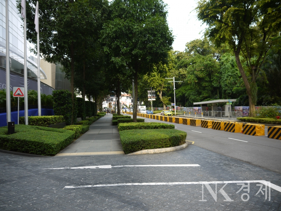 싱가포르에 처음 간 것이라 어버버하면서 호텔을 찾았습니다. 구글 지도를 보면서 가다가 바리케이트를 만났습니다.