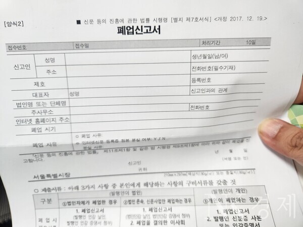 그런데 폐업신고서를 보내고 직권 폐업을 운운하는 것은 공문을 받은 언론사 입장에서 협박(?)으로 느껴질 수밖에 없습니다.