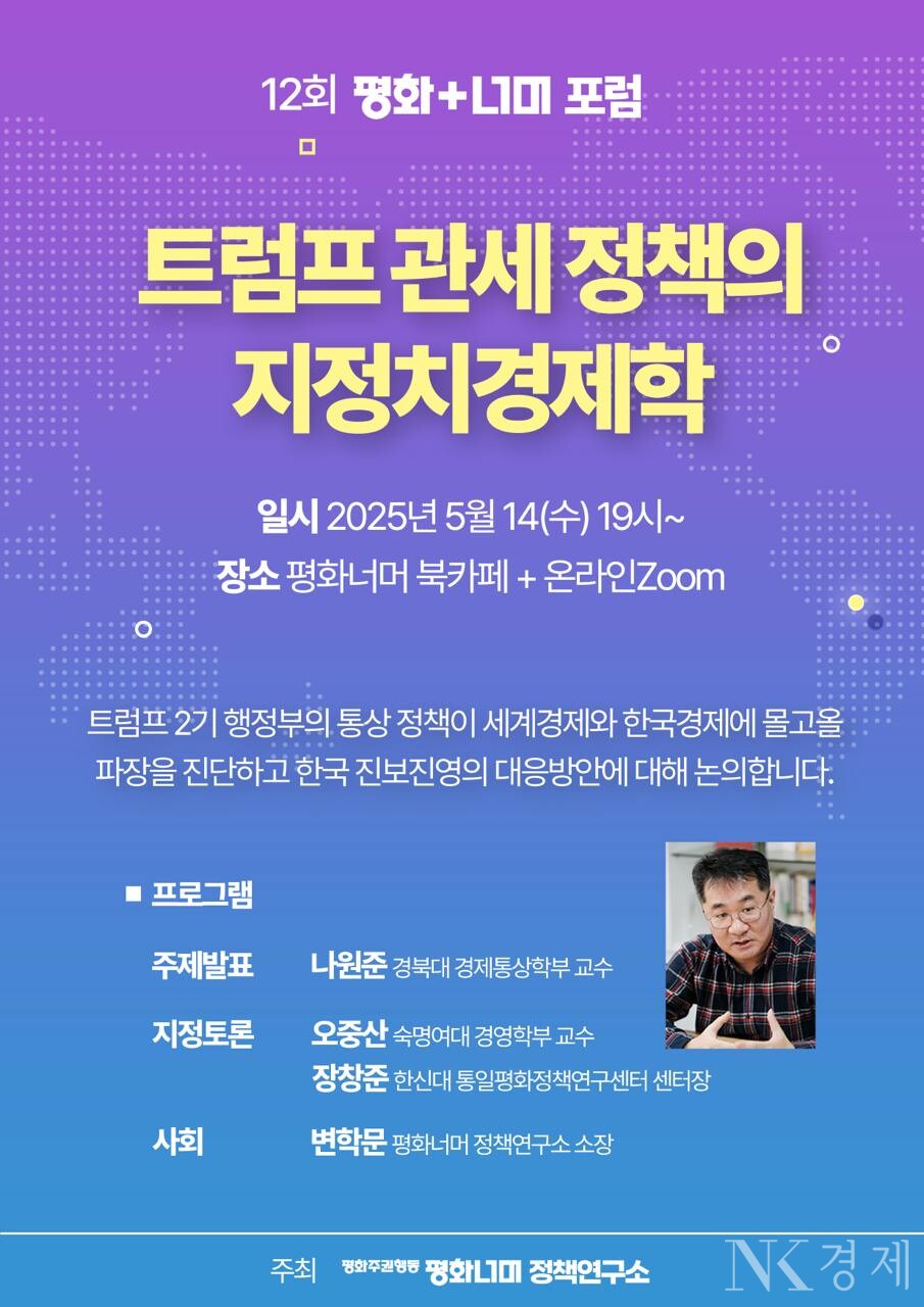 시민단체 평화너머는 5월 14일 '트럼프 관세 정책의 지정치경제학'을 주제로 12차 '12회 평화+너머 포럼'을 개최한다.