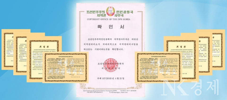 사진 속 저작권 대리 확인서에는 '조선민주주의인민공화국 저작권사무국은 대성산저작권대리소가 국내외적으로 저작권대리사업을 하고 있는 기관이라는 것을 확인한다'는 내용이 담겨있다.